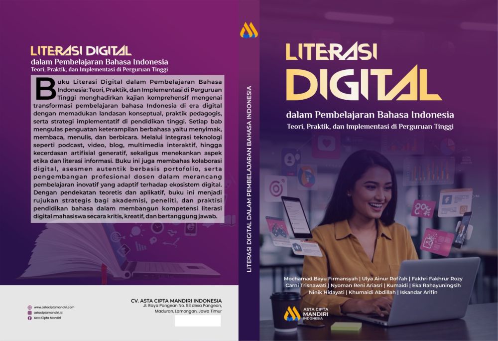 Buku Literasi Digital dalam Pembelajaran Bahasa Indonesia: Teori, Praktik, dan Implementasi di Perguruan Tinggi menghadirkan kajian komprehensif mengenai transformasi pembelajaran bahasa Indonesia di era digital dengan memadukan landasan konseptual, praktik pedagogis, serta strategi implementatif di pendidikan tinggi. Setiap bab mengulas penguatan keterampilan berbahasa yaitu menyimak, membaca, menulis, dan berbicara. Melalui integrasi teknologi seperti podcast, video, blog, multimedia interaktif, hingga kecerdasan artifisial generatif, sekaligus menekankan aspek etika dan literasi informasi. Buku ini juga membahas kolaborasi digital, asesmen autentik berbasis portofolio, serta pengembangan profesional dosen dalam merancang pembelajaran inovatif yang adaptif terhadap ekosistem digital. Dengan pendekatan teoretis dan aplikatif, buku ini menjadi rujukan strategis bagi akademisi, peneliti, dan praktisi pendidikan bahasa dalam membangun kompetensi literasi digital mahasiswa secara kritis, kreatif, dan bertanggung jawab.