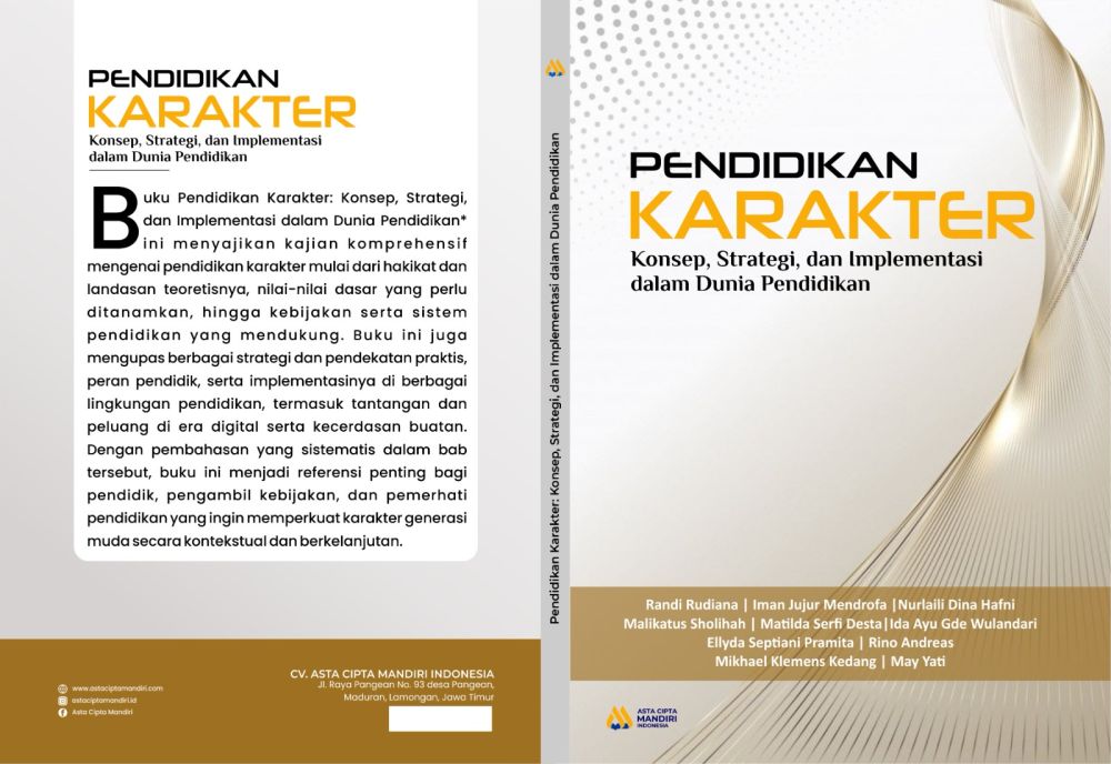 Buku Pendidikan Karakter: Konsep, Strategi, dan Implementasi dalam Dunia Pendidikan ini menyajikan kajian komprehensif mengenai pendidikan karakter mulai dari hakikat dan landasan teoretisnya, nilai-nilai dasar yang perlu ditanamkan, hingga kebijakan serta sistem pendidikan yang mendukung. Buku ini juga mengupas berbagai strategi dan pendekatan praktis, peran pendidik, serta implementasinya di berbagai lingkungan pendidikan, termasuk tantangan dan peluang di era digital serta kecerdasan buatan. Dengan pembahasan yang sistematis dalam bab tersebut, buku ini menjadi referensi penting bagi pendidik, pengambil kebijakan, dan pemerhati pendidikan yang ingin memperkuat karakter generasi muda secara kontekstual dan berkelanjutan.